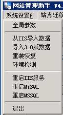 导入3.0版数据:此功能用于原来是3.0版本的网站管理助手,升级到4.0后导入网站管理助手站点设置使用