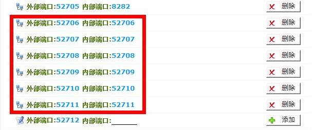 (注意:端口是设置起始端口-结束端口。即图中52706 52711代表52706到52711之间的端口)