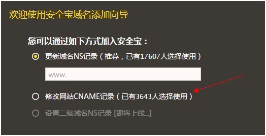 等待cname生效,生效后他们会发信息给你现实已经成功。 很多用户到这部分后就不再继续了, 以为解析后就会开启了防护以及保护功能, 一般30分钟后cname就会生效。添加安全宝发给你的邮件中的别名地址, 具体域名解析按照不同域名商的提示进行解析 3、最后最重要的就是设置方面 一定要设置 如果只是解析过去不进行设置的话 安全宝默认都是off状态 并不开启任何防护功能的 所以需要进行设置! ![]()