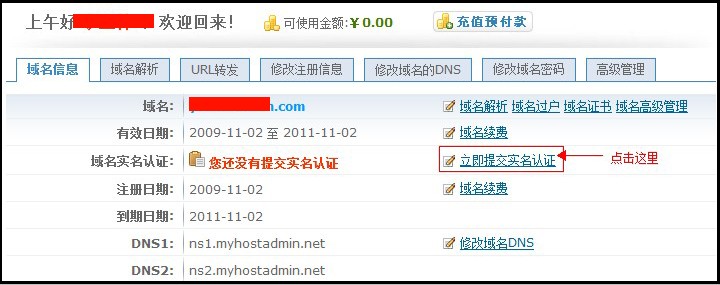 4. 注册商为“万网” 在我司域名控制面板中点击“立即提交实名认证”,在线提交资料。万网的独立控制面板暂不支持实名认证功能,但万网已经有实名认证的要求,请注意关注最新的公告,一旦万网开通接口,需要及时上传实名认证材料。 5. 注册商为“新网互联” 在我司域名控制面板中点击“立即提交实名认证”,在线提交资料。然后点域名控制面板中点“高级管理”,根据高级管理中显示的管理密码,登录: http://mgt.dns.com.cn 登录后 提交实名认证 。 注意:注册商不是“365.hk”的域名,需要在365.hk平台及顶级注册商的平台上进行双重认证。.CN域名及.中国域名不用再次进行实名认证操作。365.hk平台支持批量认证功能,能一次性对所有者相同的所有域名进行认证。 推荐将域名转移注册商到“365.hk”,转移完成后方便统一管理,无须再重复认证。转移流程为:点击“续费”按钮,按提示即可在线完成转移工作。